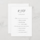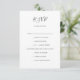Este simples cartão de RSVP elegante é perfeito para o seu casamento preto e branco minimalista moderno. O design apresenta fonte contemporânea mínima acompanhada de caligrafia formal. Mantenha-o como está, ou escolha personalizá-lo com seu próprio trabalho de arte ou fotos!