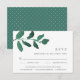 Projetado para coordenar com nossa coleção de casamento Botânica Pressionada, esta placa RSVP verde e branca da floresta dinâmica apresenta um primavera de uma vibrante folhagem botânica verde-esmeralda-aquática, que cobre a data de resposta desejada e aceita e declina a redação. Adicione suas opções de refeição ou insira as seleções abaixo.