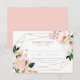 Cartão RSVP de casamento floral Elegante, primavera com data de resposta desejada e opções de janto moldadas por hídrangas cor-de-água cor-de-rosa, folhas verdes e luxuosas, e um quadro geométrico rosa dourado falso. O cartão de resposta do casamento floral se reverte para um fundo cor-de-rosa. Projetado para coordenar com a nossa coleção de casamento Floral de Primavera Blush.
