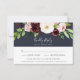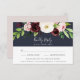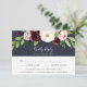 O cartão Elegante de RSVP floral de aquarelas apresenta um aglomerado de flores cor-de-rosa pincel, burgundy marsala e marfim acentuadas com uma cor verde-esbranquiçada de folhagem botânica. Personalize com a data de RSVP desejada, bem como aceite e recuse o texto, e adicione suas seleções de refeições ou opções de entrada abaixo. Projetado para combinar o nosso casamento Blush Romance e Midnight Romance e a coleção de eventos especiais.