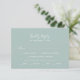 Esta placa de RSVP de seleção de menu de coordenadas de jardim verde é perfeita para um casamento de boho. O elegante, porém rústico design apresenta um verde pastel pálido com um toque moderno. Coordena-se com a Airy Greenery Collection, de Fresca e Yummy Paperie. Este cartão de resposta do casamento convenientemente pergunta aos hóspedes qual refeição eles gostariam na sua recepção.