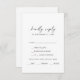 Este cartão de RSVP de escolha de guião moderno é perfeito para um casamento minimalista. O simples design preto e branco apresenta uma tipografia industrial única, com estilo boho moderno. Personalizável em qualquer cor. Mantenha o design mínimo e elegante, como está, ou personalize-o adicionando seus próprios gráficos e trabalhos de arte. Este cartão de resposta do casamento convenientemente pergunta aos hóspedes qual refeição eles gostariam na sua recepção.