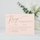 Cartão RSVP de casamento elegante e mínimo com um texto moderno no topo, em um fundo cor-de-rosa. Este simples design funcionará em qualquer estação. O cartão também inclui opções de refeição para os convidados a selecionar.