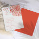 Celebre seu dia especial com um toque de elegância e sofisticação com nosso conjunto único e articamente projetado de casamento. Apresentando um fundo branco pristine adornado com um padrão mesmerizante de simetria rotacional vermelho-alaranjado de pontos e pontos fazer um padrão floral, este convite captura lindamente a essência do romance eterno e do encanto moderno. Esse convite é perfeito para casais que buscam uma mistura de design e elegância clássica contemporânea, que dá o tom de um casamento que será lembrado por sua beleza e graça. Peça a sua hoje e faça seu anúncio de casamento realmente inesquecível!