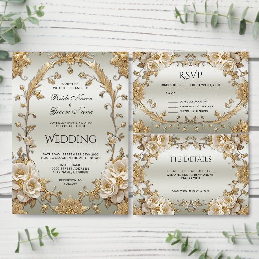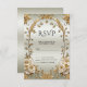 Placa RSVP de Flores Brancas do Ornamentado ouro