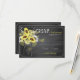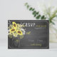 Girassóis em Mason jar e cartão de RSVP de Chalkboard para um casamento no campo rústico.