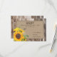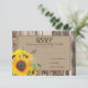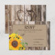 Buquê floral de girassóis sobre fundo de linen e planaltos de madeira de celeiro do país rústico design de cartão RSVP de casamento ocidental.
