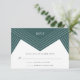 Projetado para coordenar com nossa coleção de convites de casamento do Império em Jasper, este cartão RSVP do estilo moderno art deco apresenta elementos geométricos nítidos em branco sobre um fundo de joias ricas em verde-tonto que é uma cruz entre a pele escura e o caçador. Personalize com sua data de RSVP e aceite e recuse o texto personalizado.