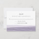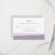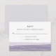Modernos e elegantes, esses cartões de resposta chic ao casamento apresentam uma borda inferior de linhas geométricas cruzadas em branco com uma lavanda de camada inferior roxa. Adicione sua data de RSVP desejada e aceite e recuse a redação personalizada. Projetado para combinar com a nossa coleção de casamento Lineation em Ametist.