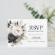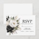 Placa RSVP de Opções de Menu Floral Preto e Branco