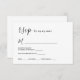 O cartão RSVP de casamento moderno e moderno retrata um estilo simples e limpo. Ele apresenta opções de aceitação, declínios, atendimento de números e refeições.