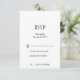 Este cartão RSVP de Reforma Minimalista é perfeito para um partido elegante ou uma recepção elegante. O clássico design apresenta uma simples tipografia de cinzas escuras com caligrafia contrastante. Você pode personalizar esta placa RSVP versátil mudando o fundo e o texto para qualquer cor ou adicionando seu próprio trabalho de arte ou gráficos.
