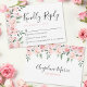 Placa RSVP do Partido Quinceañera Rosa: Esta simples e elegante placa RSVP apresenta flores e rosas cor-de-água rosa ao longo da frente e do topo do verso, colocados sobre um fundo branco limpo. Uma mistura de fontes pretas e cor-de-rosa cria um contraste na moda, mas você pode personalizar todas as cores para corresponder ao seu tema. A frente mostra "Resposta gentil" na caligrafia de script, com espaço para escrever em nomes individuais ou familiares. A parte de trás apresenta o nome da aniversariante e "Mis Quince" em um roteiro elegante. Com a sua design minimalista, esta placa RSVP complementa uma variedade de temas da Quinceañera, acrescentando um toque de sofisticação à sua celebração.