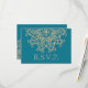 Um lindo JEWEL TONED AQUAMARINE AQUA BLUE e CARTÃO DE RESPOSTA AO casamento em ouro com um padrão de medalhão de sari ornamental inspirado por um índio exótico, com um design de SUNBURST floral e lotus. Este elegante e belo estilo indiano LUXE, ao estilo indiano moderno, RSVP é perfeito para um noivado, aniversário, Festa de aniversário OU EVENTO ESPECIAL DE OCASIÃO DE UPSCALE com um tema indiano marroquino oriental ou indonésio NIGHTS OU ALADDIN ARABIANO. Projetado por Chrissy H. Studios, LLC. Todos os Direitos Reservados.