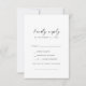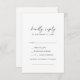 Este cartão de RSVP, pedido de música moderna, é perfeito para um casamento minimalista. O simples design preto e branco apresenta uma tipografia industrial única, com estilo boho moderno. Personalizável em qualquer cor. Mantenha o design mínimo e elegante, como está, ou personalize-o adicionando seus próprios gráficos e trabalhos de arte. Crie sua lista de convidados de casamento e sua lista de músicas de dança de uma só vez! Este cartão de resposta do casamento convenientemente pergunta aos hóspedes se eles poderão ir ao seu casamento, e também que música os fará dançar.