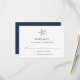 A placa RSVP de estilo simples e elegante apresenta a data de resposta desejada e o texto de aceitação/recusa personalizado, seguido de uma ilustração de estrelas de solteiro vintage em azul marinho.