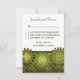 Cartão de Resposta de Casamento de Ovinas Vestígios Offbeat e Quirky, em verde-oliva, com um trio de engrenagens e um padrão picante. Este cartão RSVP único e na moda é perfeito para o seu alternativo de casamento temático steampunk! Fácil de personalizar, basta adicionar os detalhes do seu casamento nos campos de texto fornecidos. Clique em "Personalizar" para encontrar opções adicionais de personalização.