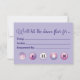 Deixem seus hóspedes lhe dizer como eles realmente se sentem com esta pegada esquisita em uma carta de RSVP violeta e lavanda. Elementos de aquarela retrorreflectores suaves, com fita cassete e bebidas mistas, fazem com que esta placa de entalhe ganhe vida.