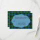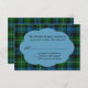 Cartão RSVP de resposta ao casamento do clan tartan xadrez do bonito Lamont. Uma área de texto decorativo azul, no meio, tem texto personalizado preto. Personalize o texto para atender às suas necessidades de casamento. Aditamento adorável aos nossos convites de casamento da xadrez Lamont.