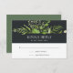 Projetado para coordenar com nossa coleção de casamento Midnight Garden, esta nova placa de RSVP botânica verde apresenta um spray de verde derrubando sua data de resposta desejada e aceitando e declinando textos personalizados, em um rico fundo fora do preto.