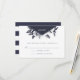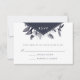 Projetado para coordenar com a nossa coleção de convites para casamento das Orquídeas da Meia-Noite, esta elegante e dramática placa RSVP apresenta a inscrição azul da meia-noite, o detalhamento geométrico moderno e uma ilustração de flor de orquídeas vintage.