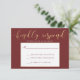 Estes Cartões RSVP de Rico Burgundy e Dourada de tipografia definirão o palco para um casamento elegante. A folha de ouro falsa para irá combinar bem com muitas cores de fundo diferentes se você quiser personalizar.