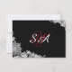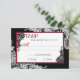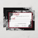 Lace branco elegante sobre fundo preto com placa RSVP de contraste vermelho.