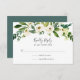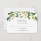 Projetado para coordenar com a nossa coleção de casamento Alabastro, esta nova placa de RSVP botânica verde e branca apresenta um spray de verde-aquarela e florais brancos que ultrapassam a data de resposta desejada e aceita e declina a sua redação.