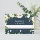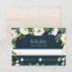 Projetado para coordenar com a nossa coleção de casamento Alabastro, este novo cartão RSVP botânico verde e azul-marinho apresenta um spray de verde-aquarela e florais brancos que ultrapassam a data de resposta desejada e aceita e declina a redação.