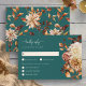 O Teal Fall Deixa A Placa RSVP Floral. Esta placa de RSVP horizontal do Teal Terracotta Fall Deixa a Coleção Floral combina estilo refinado com encanto sazonal. Apresentando "gentilmente resposta" em um roteiro elegante na frente, ele inclui seções claramente organizadas para opções de refeições, garantindo um processo de planejamento suave para o seu grande dia. O dorso apresenta um padrão coordenado de folhas de aquarela pintadas manualmente em laranja queimada e terracota, aliadas a dálias beges moles e rosas de cuba de cobre em um fundo rico. É uma maneira bela e prática de reunir respostas enquanto mantém a sua suíte de casamento coesa e cheio de queda elegante. Comece a personalizá-lo hoje para um toque perfeito e na moda.