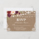 Rustic Wedlap String Lights Lace Watercolor Marsala RSVP Card