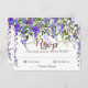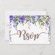 Largura floral de wisteria roxa sobre design de fundo branco com fundo com fundo sobre lavanda de fundo design moderno inspirado na placa RSVP.
