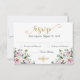 Destaques elegantes de aspecto brilhante em ouro sobre fundo branco com placa RSVP floral de cor d'água.