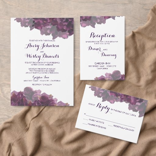5 Placa RSVP Floral Roxa 3,5. Personalizável. Parte de uma coleção de papéis de carta de casamento de Whimzy_Designs.