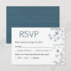 Placa RSVP de Casamento Floral Rustic Chalky Blue & White com Textura de Madeira. Personalização habilitada para personalizar ainda mais esta placa RSVP. Designs correspondentes disponíveis para Convites, Cartões de agradecimentos etc.