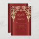 Placa RSVP Floral Vermelha Moderna Dourada