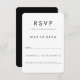 Este é um cartão RSVP de casamento de design moderno com suporte a preto. Convite, envelope e etiquetas também disponíveis para completar o seu convite de casamento.