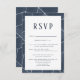Um impressionante padrão geométrico cria um belo fundo para estas placas de RSVP para combinar com os seus impressionantes convites de Gala Geométrica. Apresentando marinho azul-aquarela posicionada lindamente em uma grade geométrica. Perfeito para eventos corporativos, angariadores de fundos e mais celebrações.