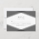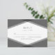 Este cartão RSVP de casamento moderno apresenta uma design geométrica em camadas de cinza na frente com a palavra "Responder" e um lado preto nas costas. Personalize-o substituindo o texto do marcador de posição. Para obter mais opções, como alterar a fonte, seu tamanho e espaçamento entre letras, clique no botão "Personalizar". *Observe que a Marca d'água do Zazzle que aparece na visualização de zoom NÃO aparecerá no produto impresso final. © Rosewood e Citrus