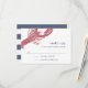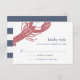 A placa RSVP de estilo costeiro apresenta a data de resposta desejada e a formulação de aceitação/declínio personalizada em azul marinho, acentuada com uma ilustração de lagosta de estilo vintage em vermelho apagado e apagado. Projetado para combinar com nossos convites e acessórios de casamento de lagosta de Harborside.