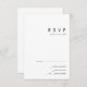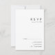 Este cartão de RSVP Moderno Minimalista é perfeito para o seu casamento clássico de Boho. Seu design simples, único e abstrato, acompanhado de um roteiro mínimo contemporâneo e de uma paleta de cores brancas e pretas dá a este produto uma sensação de luxo formal elegante enquanto permanece simplista, boêmica. Mantenha-o como está ou escolha personalizá-lo com trabalho de arte ou gráficos de sua escolha. Você também pode procurar outros produtos dentro desta coleção para juntar todo o seu casamento!