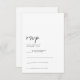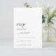 Esta placa RSVP apresenta uma fonte escrita à mão e um design minimalista moderno. Altere facilmente as cores e edite o texto *maioria* para atender às necessidades da sua ocasião. Esta carta é perfeita para a sua celebração contemporânea, industrial ou boêmica.