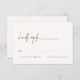 Design apresenta uma fonte manuscrita e um design minimalista moderno. Projetado para coordenar com a coleção de convites para casamentos "AURORA". Para alterar os detalhes, clique em "Personalizar". Para mover o texto ou alterar o tamanho, a fonte ou a cor, clique em "Clique para personalizar mais". Veja o link de coleção nesta página para ver todos os itens correspondentes neste belo design ou veja a coleção aqui: https://bit.ly/3wX4Q4r