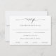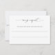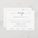 Adote o charme da simplicidade e da modernidade com a nossa Delicada Carta RSVP de Casamento de Caligrafia - uma obra-prima de elegância e funcionalidade. Este cartão apresenta um belo e delicado roteiro de caligrafia na frente, mostrando as escolhas de refeições dos seus convidados com um toque sem esforço de sofisticação. Mas isso não é tudo - sacudir a carta para trás, e você descobrirá uma surpresa deliciosa! Seus hóspedes podem pedir uma canção de sua escolha, acrescentando um toque personalizado à celebração do seu casamento e criando memórias queridas. Feito com atenção aos detalhes, essa placa de RSVP combina perfeitamente a estética moderna com a beleza eterno da caligrafia. Sua design limpa garante que o foco permaneça no roteiro delicado e nas informações essenciais, fornecendo uma experiência RSVP perfeita e deliciosa. Faça seu casamento planejar uma brisa com nossa Delicada Carta de RSVP de Casamento de Caligrafia - uma adição moderna e simples, mas elegante, ao seu conjunto de papelaria, permitindo que seus hóspedes respondam em estilo e entusiasmo.