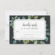 A placa Elegante de RSVP botânica apresenta folhas e folhagem verdes de aquarela em um estilo vintage, enquadrando sua data de RSVP desejada e aceitando e declinando o texto personalizado. Um rico fundo fora do preto adiciona um apelo dramático. Concebido para corresponder à nossa coleção de convites da Noite de Botânica.