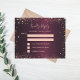 Um fundo burguês, decorado com faíscas rosa douradas. Personalize e adicione a resposta por data. 1 folha = 1 placa RSVP impressa borda a borda.