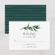 Projetado para coordenar com a nossa coleção de casamento Palm Wreath, esta elegante placa de RSVP botânica verde e branca tropical apresenta uma folha de rosto solteiro em cor verde-escura que cobre a data de resposta desejada e aceita e recua a redação.