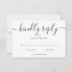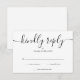Um simples cartão RSVP de script de assinatura preto e branco elegante com seus detalhes definidos em tipografia gráfica. Projetado por Thisnotme©