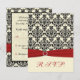 Este cartão de resposta vermelho, creme e preto possui uma fita IMPRESSA ON com um broche de joia de diamante IMPRESSO que corresponde ao convite de casamento e outros itens mostrados abaixo. Se você precisar de outros itens correspondentes, envie um e-mail para niteowlstudio@gmail.com. Os itens correspondentes existentes são mostrados abaixo.