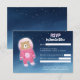 Convide seus hóspedes a responderem no estilo estelar com esta charmosa placa RSVP, mostrando um urso de astronauta cor-de-rosa a derivar através de um céu estrelado profundo. O design de temática espacial adiciona um toque lúdico e moderno ao seu conjunto de eventos. Inclui áreas para nome, frequência, preferências alimentares e data de resposta. Uma forma doce e criativa de recolher respostas para a sua celebração.